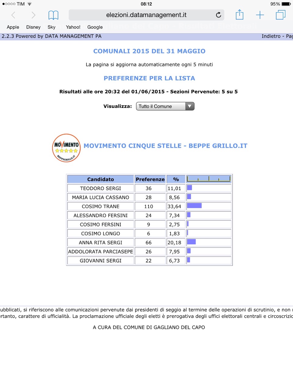 RISULTATI ELEZIONI AMMINISTRATIVE 31/05/2015 GAGLIANO DEL CAPO